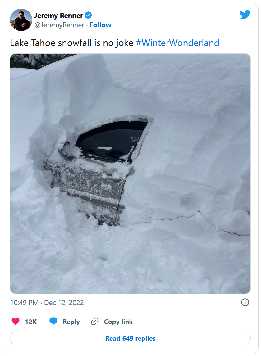 Jeremy Renner possède une propriété dans le Nevada. Il a été victime d'un grave accident alors qu'il déneigeait les alentours de sa maison. Dans un état critique mais stable, le comédien a été transporté d'urgence par avion à l'hôpital. Comme l'a révélé le Reno-Gazette Journal, l'acteur a une propriété dans l'état du Nevada, près du mont Rose-Ski Tahoe, à environ 40 kilomètres de Reno.