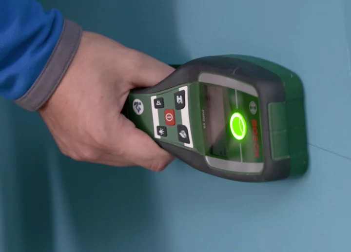 Le détecteur de matériaux est l'outil indispensable pour repérer précisément la présence de matériaux divers dans un mur ou une cloison. Selon le modèle, l'appareil peut détecter la présence de tuyaux ou rails métalliques, de fils électriques et/ou du bois.