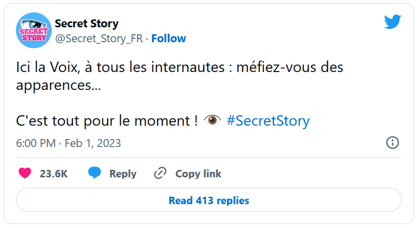 En effet, c'est un message posté sur Twitter qui a affolé les fans de Secret Story. Ce 1er février, le compte officiel a posté un mystérieux message.