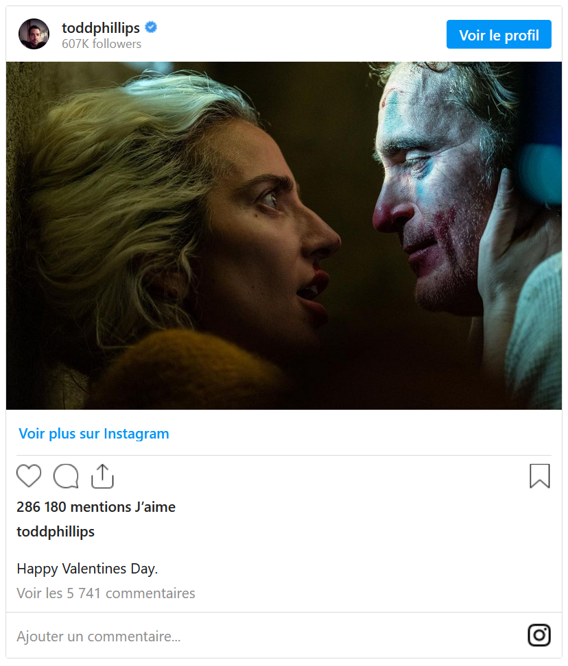 Une Lady Gaga en Harley Quinn, de quoi susciter l'intérêt de bon nombre de fans. Et par chance, voilà que Philips a profité de la Saint-Valentin pour partager une première image de Lady Gaga en Harley Quinn. Une histoire d'amour teasée le jour de la Saint-Valentin, un cliché à découvrir juste en dessous.