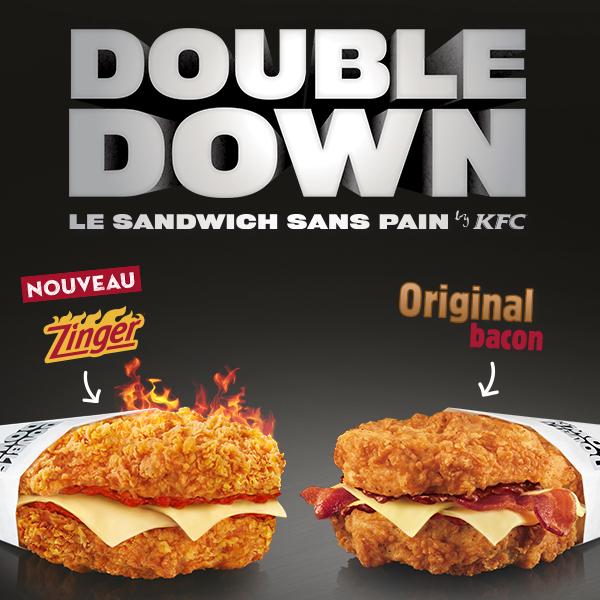 En France, le Double Down est apparu à la carte des restaurants de la chaîne en octobre 2014 en édition limitée. KFC avait également décliné le burger en deux saveurs, Original Bacon et Spicy Zinger en 2015 puis une troisième déclination, le Black Pepper en septembre 2017.