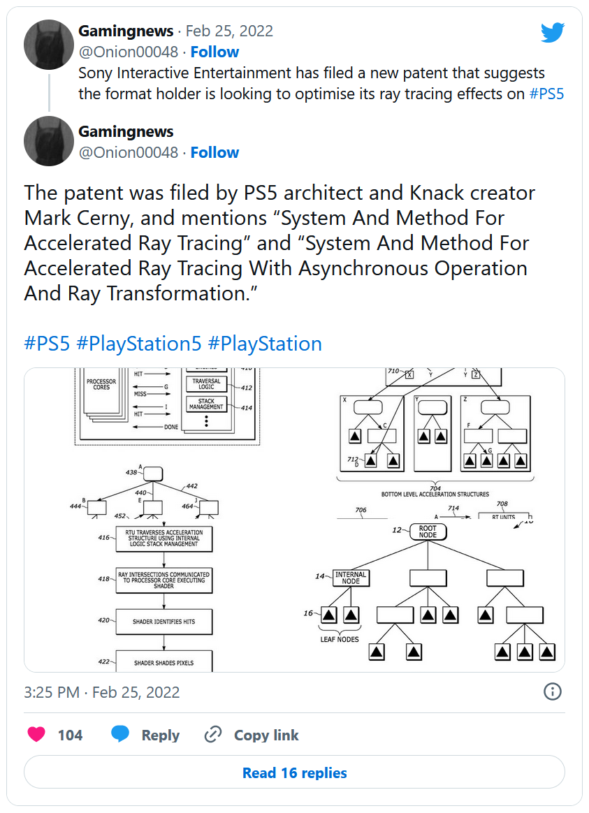 Étant donné que cette PS5 Pro serait apparemment toujours en cours de développement, les rumeurs estiment que la version améliorée de la console next-gen de Sony ne sortira pas avant la fin 2024. Pour le moment, aucuns détails concernant les améliorations en question n'ont été communiqués. Mais on peut déjà retrouver quelques pistes à explorer, en particulier sur Twitter, depuis qu'un internaute a révélé que Mark Cerny, connu notamment pour être le réalisateur du jeu Knack lors du lancement de la PS4, mais aussi et surtout pour être l'architecte de la PS5, aurait déposé un brevet sur l'accélération du ray tracing.