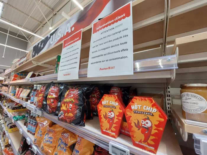 Même si vous appréciez manger épicé, cette chip vous donnera des nausées. Pourtant, elle provient de République Tchèque et vendue en grande surface. L'aliment est donc censé respecter les normes européennes. Le problème vient du challenge en rapport avec le produit alimentaire. Nous sommes en effet invités à manger la chip "la plus pimentée du monde". Le site internet incite à se filmer et à partager la vidéo sur les réseaux sociaux, sans doute pour faire connaître le produit à l'international. Aux Etats-Unis, le défi faisait déjà fureur et était nommé le "One Chip Challenge", et a été rebaptisé "Hot Chip Challenge" depuis sa commercialisation au sein de l'Union Européenne.