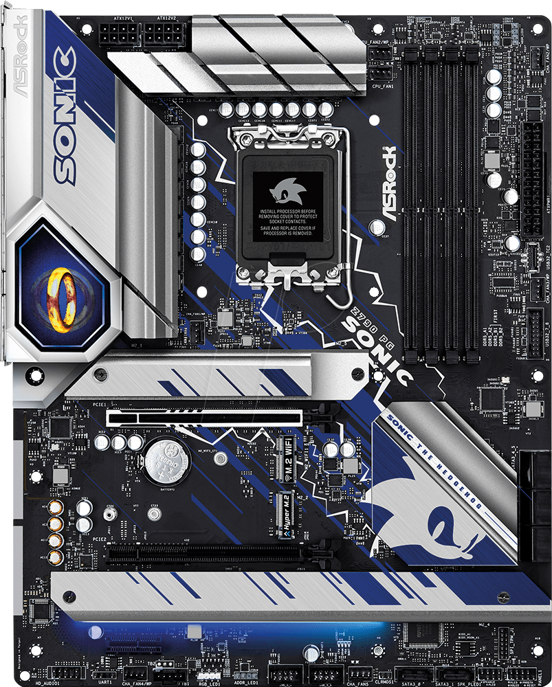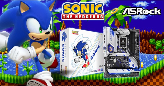 ASRock Z790 PG SONIC, une carte mère officiellement autorisée avec le motif de SEGA Sonic the Hedgehog. Un anneau rotatif de 16 bits se dénonce sur le panneau d'E/S arrière, tandis que vous pouvez même regarder Sonic au centre du sac de course à pied à l'arrière. La carte mère ASRock a été lancée à l'occasion de la publication de SEGA nouveau jeu Sonic Frontiers.