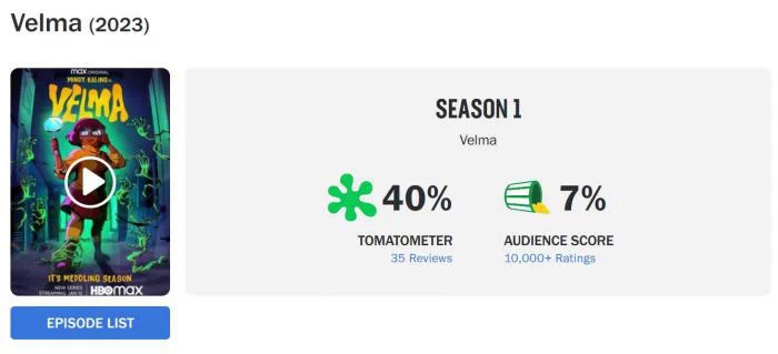 Pourtant, cela pourrait ne pas être représentatif de la qualité réelle de la série Velma. Cette dernière a dès sa sortie été la cible d'une énorme campagne de haine et de review bombing. Il s'agit d'un phénomène visant à volontairement (même si vous n'avez pas vu l'oeuvre) mettre une critique et une note extrêmement mauvaises sur les différents sites, comme ceux présentés plus haut. L'exemple le plus récent est le DLC du jeu Horizon : Forbidden West, où l'homosexualité du personnage d'Aloy est vivement critiquée. Ainsi, sur Metacritic, la note du DLC auprès de la presse est de 82/100, là où celle des fans est de 2,7/10. Le Review Bombing devient un véritable problème qui force les plateformes à modifier leurs politiques et à s'armer contre cette pratique qui ne permet pas d'apprécier une oeuvre (bonne ou mauvaise) à sa juste valeur.