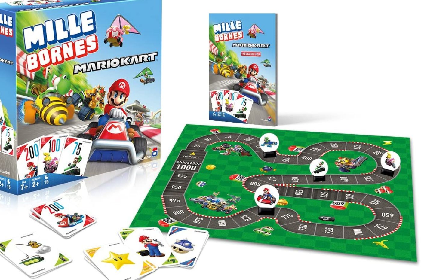 Dans cette sélection, on ne retrouvera que des classiques revisités, simplement parce que c'est les meilleurs et que le travail d'adaptation est excellent. Les amateurs de vitesse seront ravis d'apprendre qu'il existe une version Mario Kart du Mille Bornes, dans une édition plateau plutôt bien faite. On retrouve un circuit retraçant les 1000 kilomètres à parcourir, ainsi que des pions à l'effigie de Mario et sa bande.