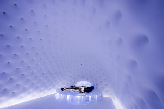 Affichant une température de -5 à -8°C, les chambres de glace de l'ICEHOTEL promettent une véritable expérience. Pour que la nuit reste la plus douillette possible, le lit, équipé d'un matelas grand confort, est recouvert de peaux de rennes sur lesquelles on se couche, emmitouflé dans un sac de couchage thermique adapté aux très basses températures.