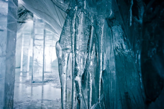 Ce sont quelque 2 500 blocs de glace, au poids plume de 2 tonnes, qui sont taillés et assemblés afin de donner naissance à cet extraordinaire palais des glaces.