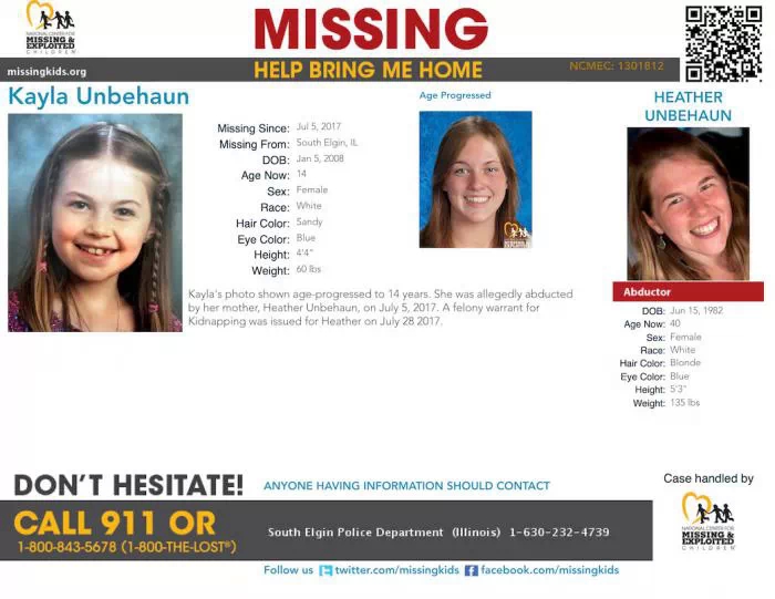 En effet, en 2017, la petite Kayla Unbehaun, âgée de 9 ans, disparaît dans l'Illinois aux Etats-Unis. Ses parents divorcés, c'est son père qui disposait de la garde complète. En juillet 2017, l'enfant souhaite rendre visite à sa mère qui avait l'autorisation de la voir de façon occasionnelle. Son père la dépose donc chez sa mère Heather mais après un séjour en camping, la femme ne ramènera jamais l'enfant.