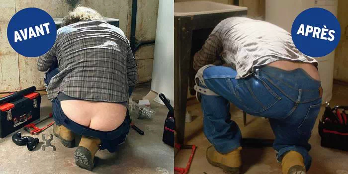 Vous en avez marre de voir la raie des fesses de vos voisins de métro, de vos collègues de bureau ou de vos amis trop décontractés? Vous avez peur de dévoiler involontairement votre anatomie lorsque vous vous penchez ou vous vous asseyez, car votre métier vous demande d'être accroupi ou à genoux ? Ne cherchez plus, le jean anti-raie est fait pour vous !