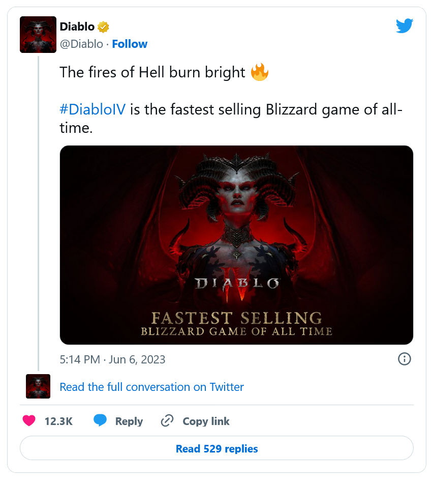 Diablo IV est le jeu Blizzard qui s'est vendu le plus rapidement de tous les temps.
