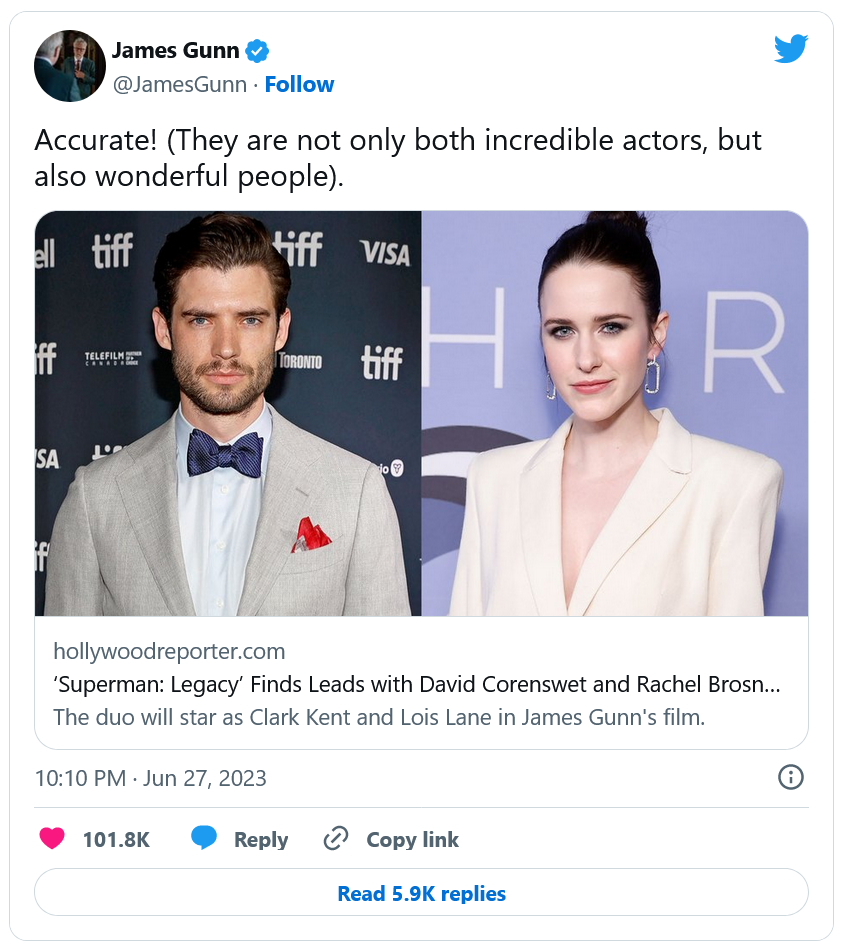 Les deux interprètes auront la délicate mission de faire oublier au public Henry Cavill et Amy Adams ; sachant la ferveur des fans de Zack Snyder, qui réclament à corps et à cris le retour du Snyderverse, la tâche apparaît dès lors comme délicate. Toutefois, il nous semble que l'on peut faire confiance à James Gunn, qui a déjà montré ses grandes capacités de metteur en scène. Il reste en revanche de nombreux autres noms à dévoiler, notamment ceux des principaux membres de la Ligue de Justice, comme Batman et Wonder Woman.