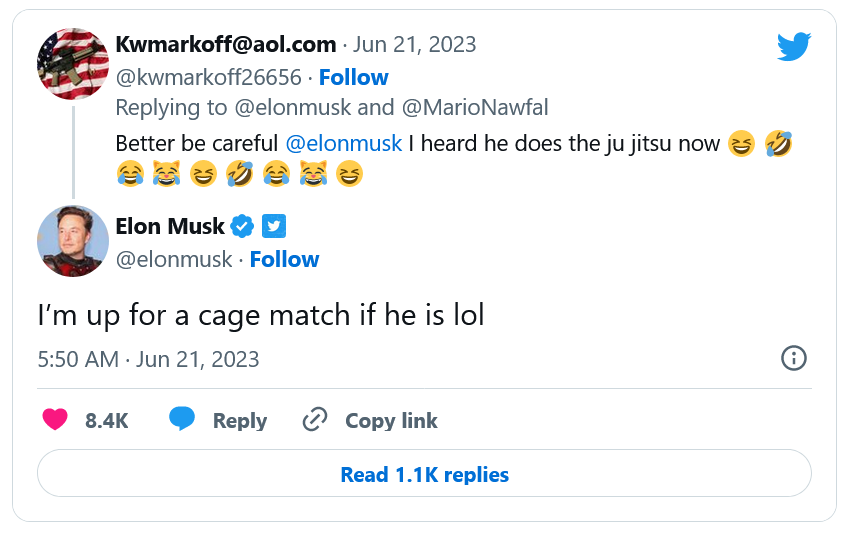 Quand Elon Musk défie Mark Zuckerberg... et que celui-ci accepte.