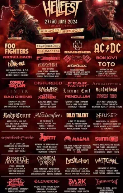 Créé en 2006, le Hellfest est un festival de musique qui se tient chaque année à Clisson, en France. C'est l'un des plus grands festivals de musique consacrés au heavy metal, au hard rock et à leurs sous-genres. Et c'est le plus grand festival de France. Le Hellfest présente une programmation impressionnante avec des groupes et des artistes renommés de la scène du metal et du rock. Des groupes célèbres tels que Iron Maiden, Black Sabbath, Metallica, Slayer, Judas Priest, Marilyn Manson, Megadeth, Alice Cooper, Guns N' Roses et bien d'autres ont tous joué au Hellfest.