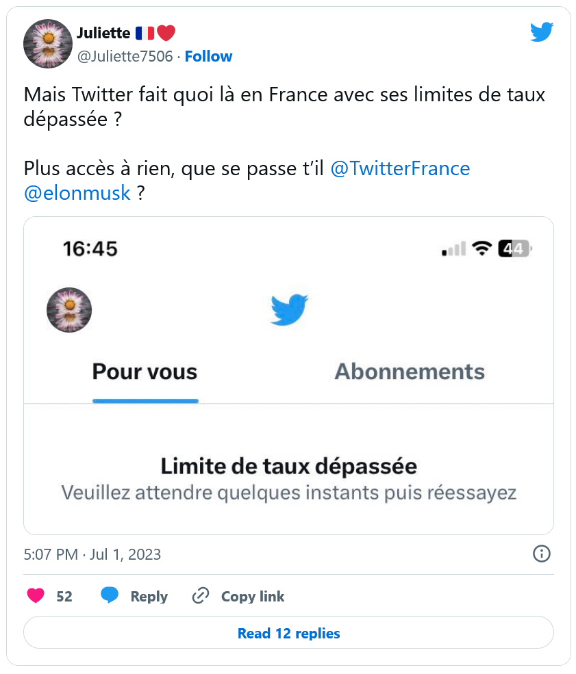 Depuis quelques heures, de nombreux utilisateurs de Twitter sont confrontés à divers problèmes. En effet, il semblerait que l'accès au réseau social soit perturbé pour de nombreux internautes, ces derniers ayant alors des difficultés à accéder à certains profils, ou encore pour l'affichage des publications. Un problème qui est présent depuis le début de cette après-midi en France, mais pas seulement, puisque ces restrictions d'accès semblent également être présentes dans d'autres pays.