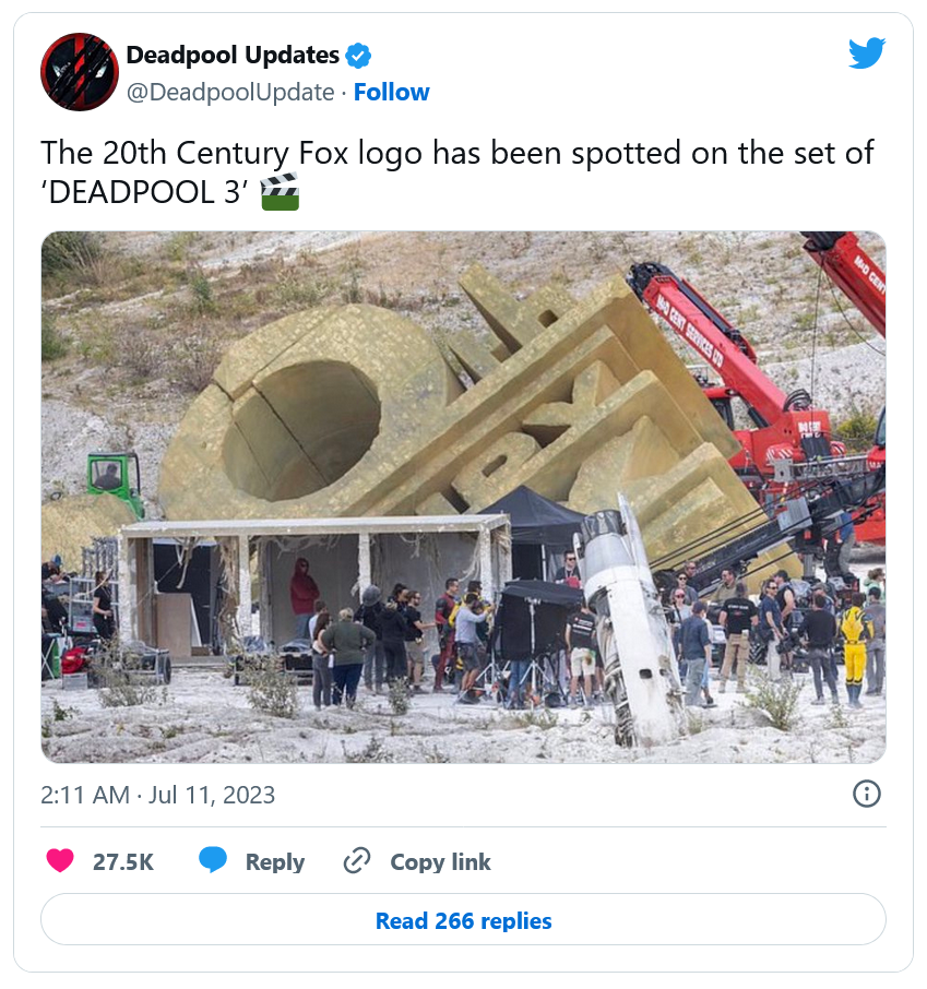 Le logo de la 20th Century Fox a été repéré sur le tournage de 'DEADPOOL 3'.