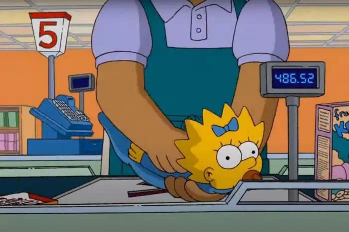 En effet, Maggie devient le dindon de la farce d'un gag visuel. Au supermarché avec sa mère, dont l'attention est distraite durant quelques instants, l'enfant se retrouve sur le tapis roulant de la caisse... Le temps que sa génitrice réalise où elle est passée, la fillette a le temps d'être scannée comme un vulgaire article. Fort heureusement, on la retrouve ensuite, saine et sauve, dans un sac de courses en carton. Alors, vous souvenez-vous oui ou non du prix indiqué une fois Maggie passée ? Petit indice : ce dernier n'a pas été choisi au hasard, loin de là !