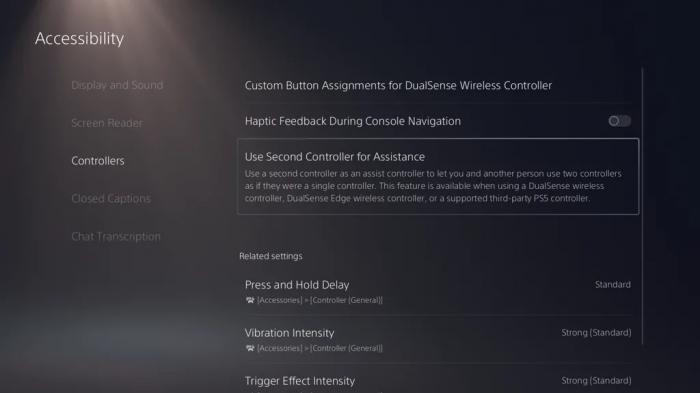 Sony propose une fonctionnalité pour permettre aux joueurs d'attribuer une deuxième manette à un compte pour profiter des jeux d'une nouvelle manière. La console pourra être contrôlée avec deux manettes comme s'il n'y en avait qu'une seule. Cette option pourra servir par exemple, pour aider un enfant qui pourrait rencontrer des passages compliqués au cours d'une partie.