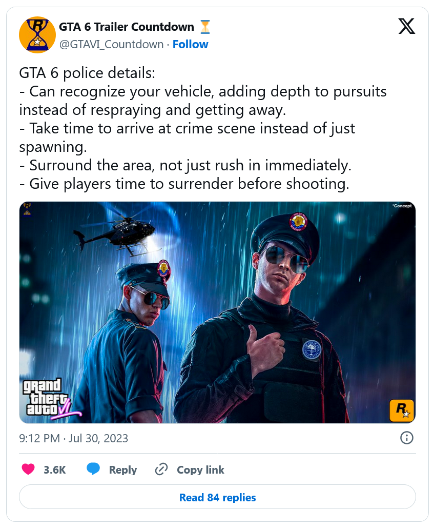 En septembre 2022, Rockstar Games a été contraint de faire face à des fuites massives concernant son futur titre phare : GTA VI. Le studio a du prendre la parole au sujet de ces leaks émanant d'un hacker. Du gameplay avait été révélé à travers 90 vidéos mises en ligne sur la toile. Si la plupart ont été supprimées du net, de nouvelles fuites teasent les futurs mécanismes de la police.