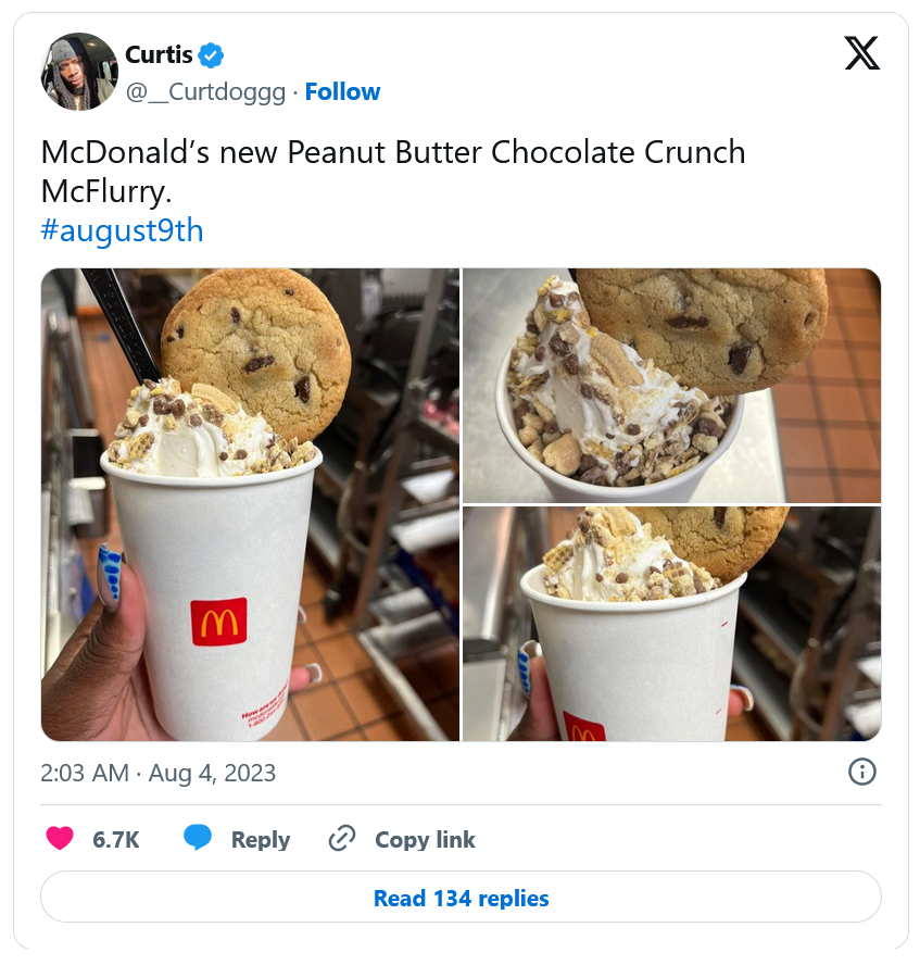 De quoi rassasier nos envies de sucre, deux ans après le McFlurry Caramel Brownie de 2021. Aux États-Unis, ces desserts seront servis entre le 9 aout et le 17 septembre : peut-on espérer qu'à partir de l'automne, cette glace en édition limitée traversera l'Atlantique pour atterrir dans nos McDonald's français ?