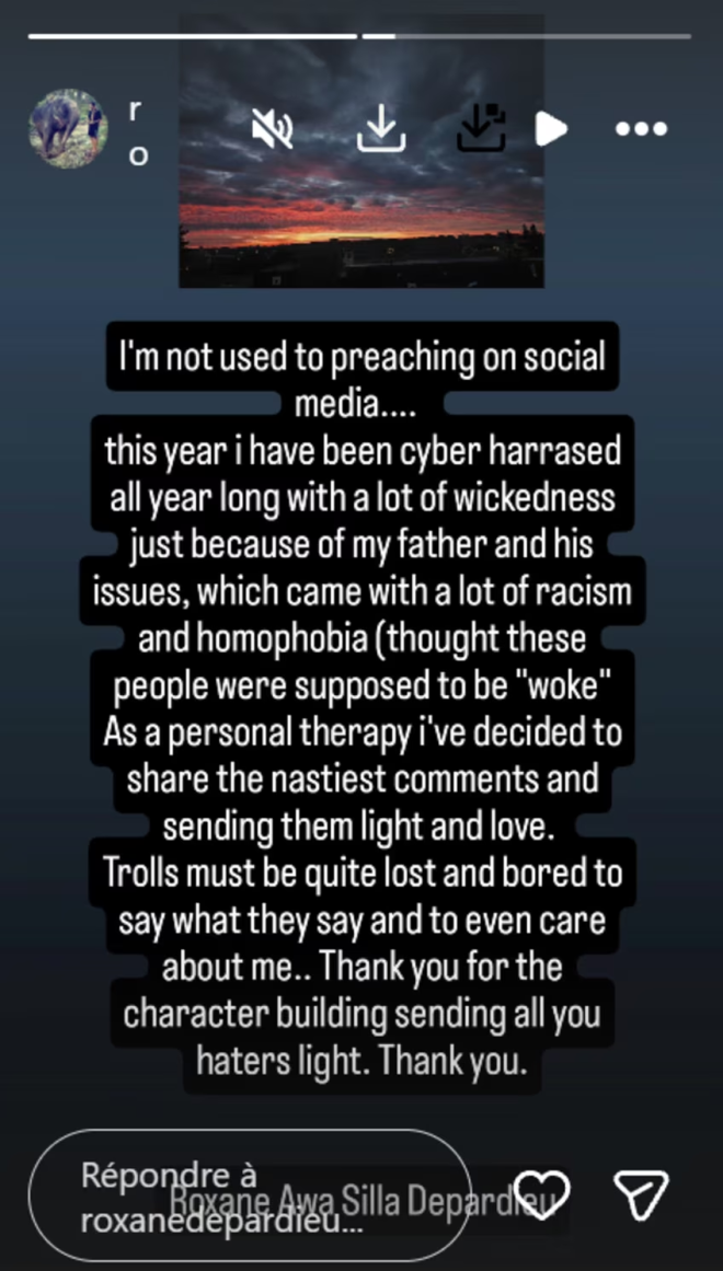 Mais depuis sa prise de position, Roxane Depardieu est victime de cyberharcèlement. Elle a décidé de dénoncer cette vague de haine dans des stories publiées sur son compte Instagram ce mardi 10 février.