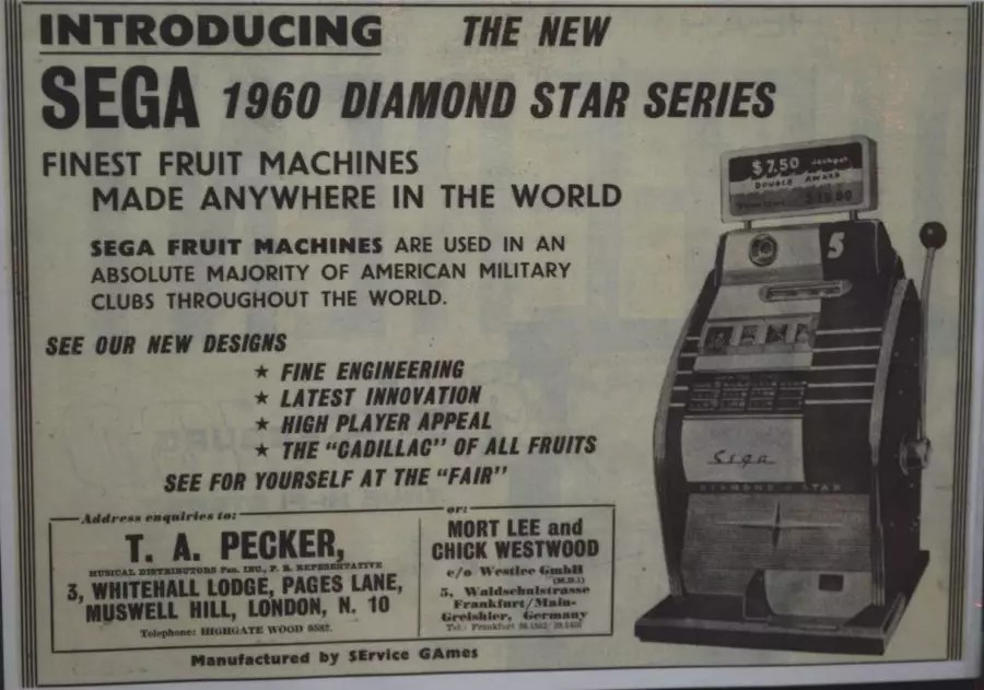 Quelques mois plus tard, en juillet 1960, la Nihon Kikai Seizô exploite la première machine produite au pays du Soleil-Levant : la SEGA-1000. Ce jukebox destiné aux civils marque le véritable début de SEGA.