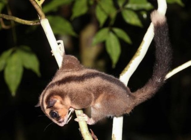 Le planeur à queue annelée se caractérise par ses oreilles dépourvues de poils et sa queue préhensile.